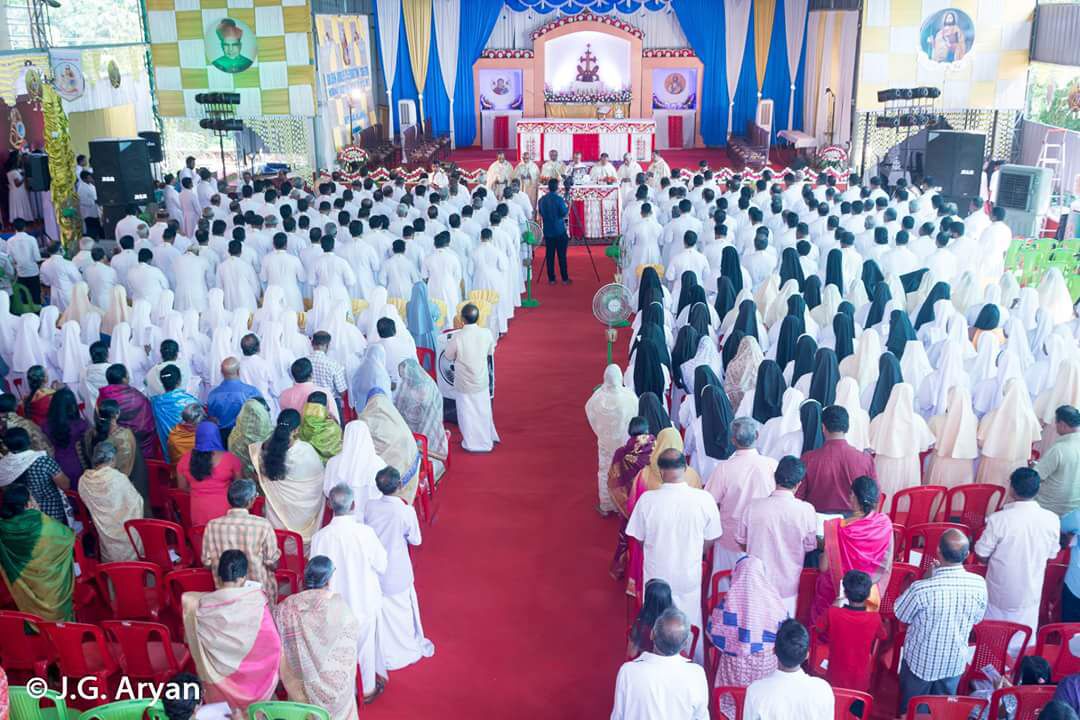 The Holy Eucharist started at 3 p.m. and was presided over by Archbishop George Njaralakatt, Archbishop of Tellicherry and Vice-President of the CBCI. He was accompanied on the altar by Archbishop Maria Callistus Soosa Pakiam (Trivandrum), Bishops Sebastian Vadakel MST (Ujjain), Raphael Thattil (Shamshabad) and James Athikalam MST (Bishop-elect, Sagar), Fathers Kurian Ammanathukunnel and Francis Kureeckal. Most of the MST Fathers (220/349) and many priests, nuns, seminarians and the faithful participated in the thanksgiving Holy Qurbana.